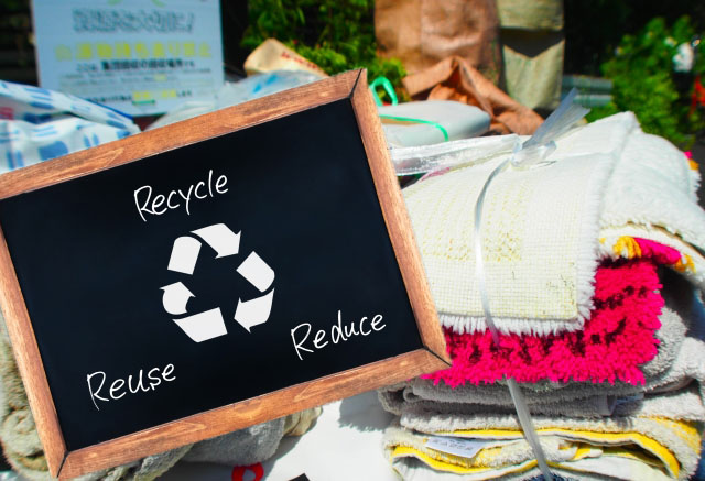 再生品の使用を心がける事でゴミを減らす。